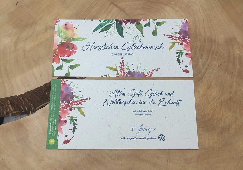 Entdecken Sie unsere nachhaltigen Grüße – die umweltfreundliche Art, Liebe und Wertschätzung zu teilen. Unsere einzigartigen Postkarten aus Samenpapier bieten nicht nur eine persönliche Note für jeden Anlass, sondern schenken auch neues Leben. Pflanzen Sie die Karte und beobachten Sie, wie aus Ihren Worten blühende Blumen erwachsen. Mit jedem Gruß unterstützen Sie die Biodiversität und senden eine Botschaft, die weit über das Geschriebene hinausgeht.